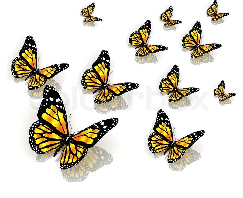 Fotomural Estandar Catorce Mariposas Amarillas Aisladas En Blanco