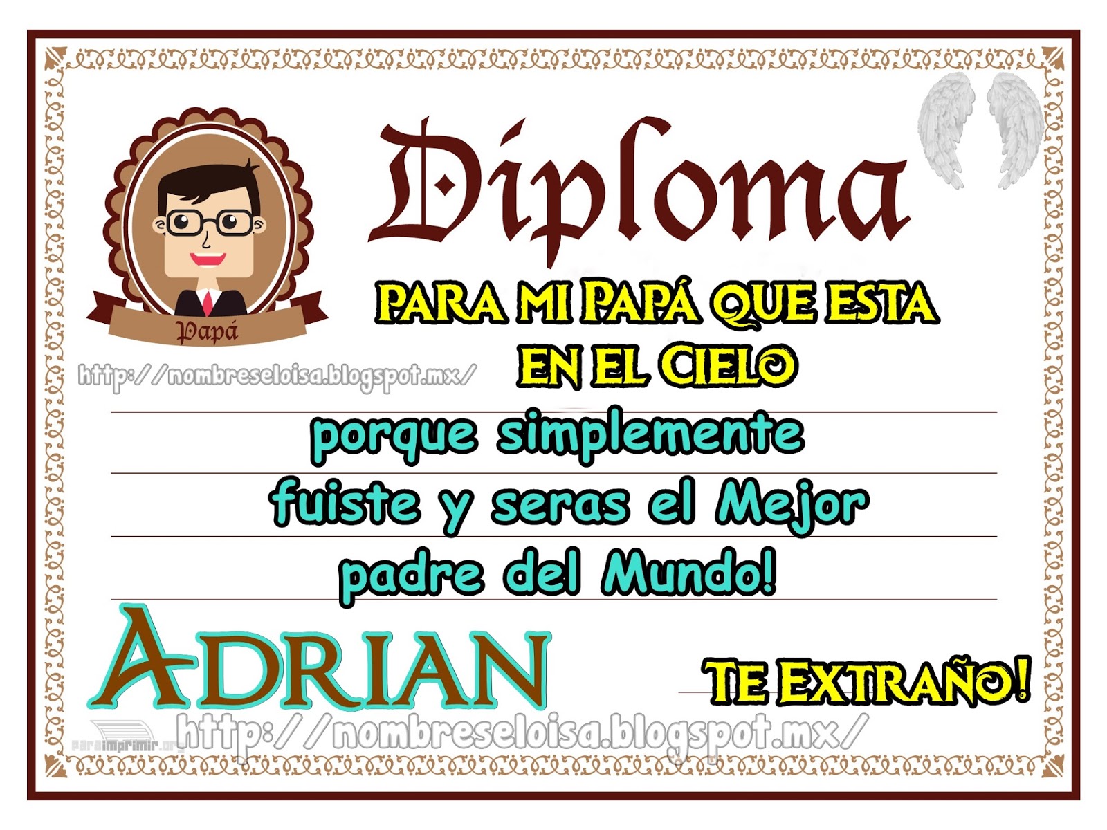 Nombreseloisa Com Diploma A Mi Papa Que Esta En El Cielo